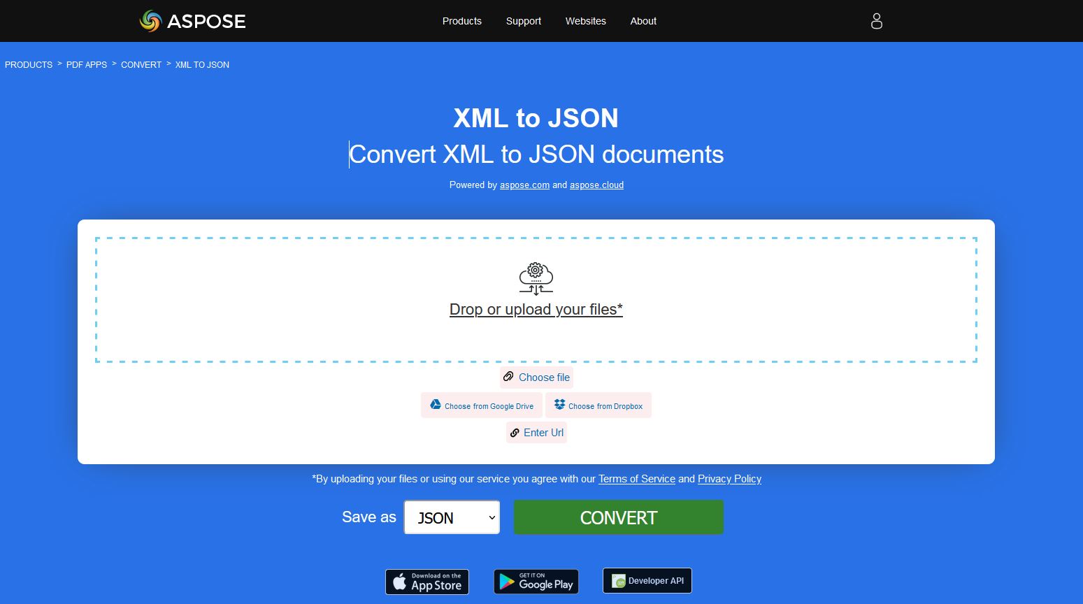 يمكنك أيضًا التفكير في استخدام تطبيقنا المجاني XML to JSON Converter لتجربة تحويل XML إلى JSON بسهولة. تم تطوير هذا التطبيق الخفيف والمتفوق على بنية Aspose.Cells Cloud ويسمح لك بأداء تحويل XML إلى JSON عبر الإنترنت.