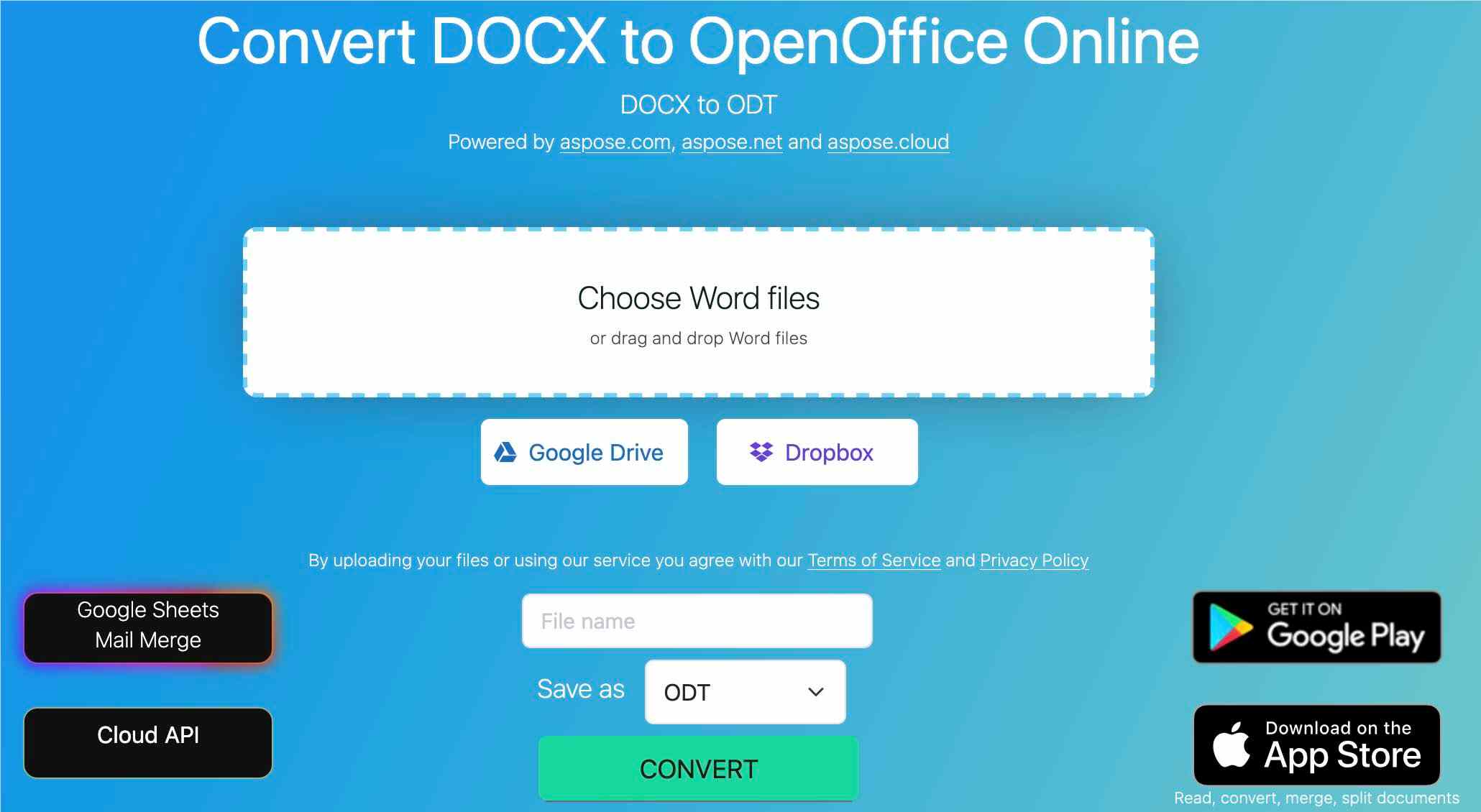 გ szeret ქმართ ო ხუთ ცომ მოდელი? გამოიყენეთ ჩვენი Free Online DOCX to ODT Converter რომელიც შექმნილია Aspose.Words REST API-ის საფუძველზე.