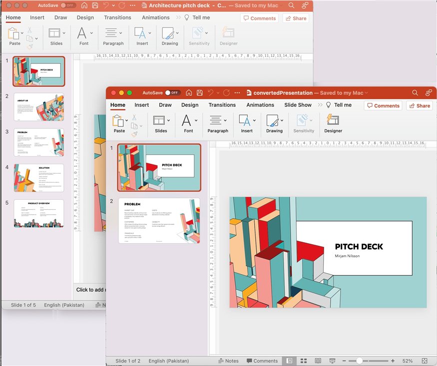 ไฟล์นำเสนอ PowerPoint ที่ใช้ในตัวอย่างข้างต้นสามารถดาวน์โหลดได้จาก Architecture pitch deck.pptx.